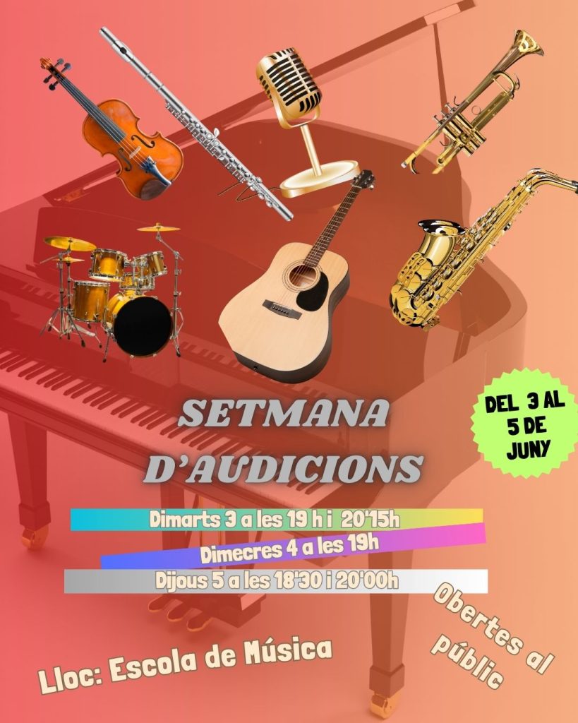 Els propers actes que s’acosten són la setmana de Concerts-audicions, que es durà a terme del 3 al 5 de juny. Seran concerts oberts al públic i es realitzaran a les aules 5 i 6 de l’escola.