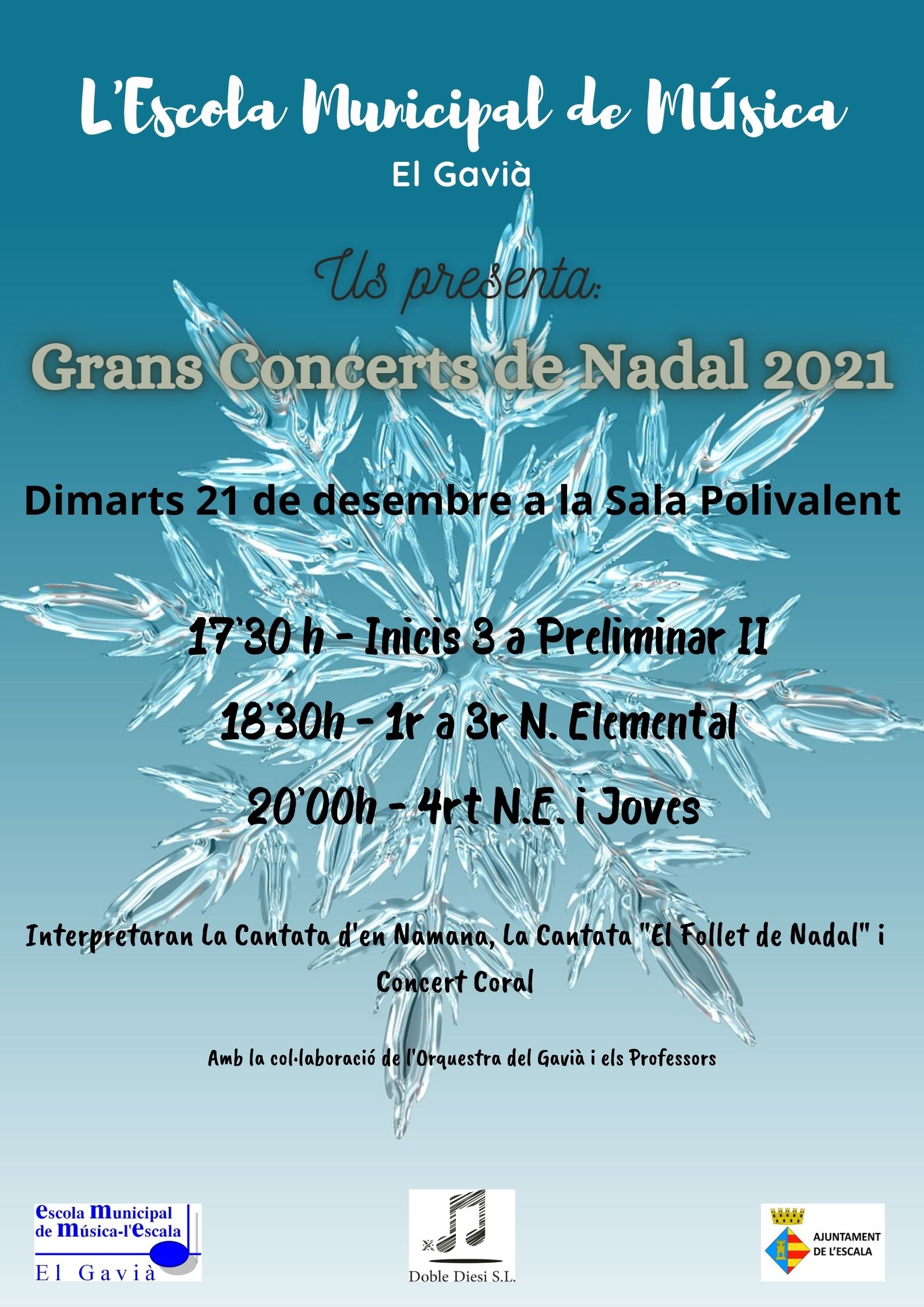 La data per aquest esdeveniment és la del dimarts dia 21 de desembre, a la Sala Polivalent.