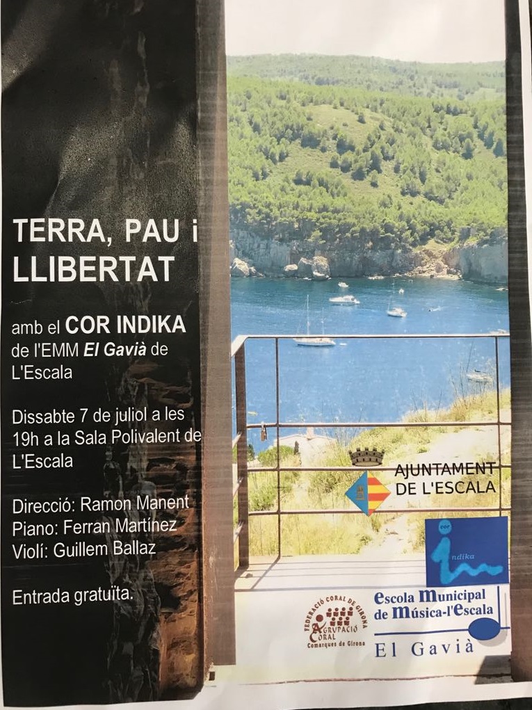 L’acte es farà a les 19h  a la Sala Polivalent de L’Escala i per aquesta ocasió el Cor Indika,  sota la direcció de Ramon Manent, estarà acompanyat per Ferran Martínez al piano i Guillem Ballaz al violí.