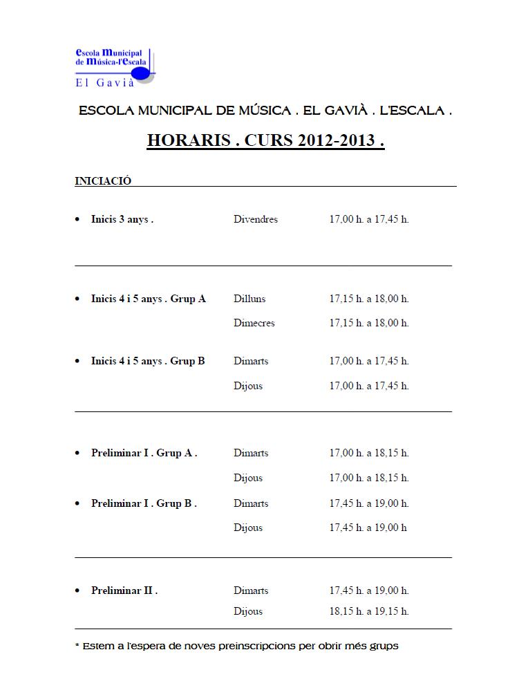 ESCOLA MUNICIPAL DE MÚSICA . EL GAVIÀ . L’ESCALA .