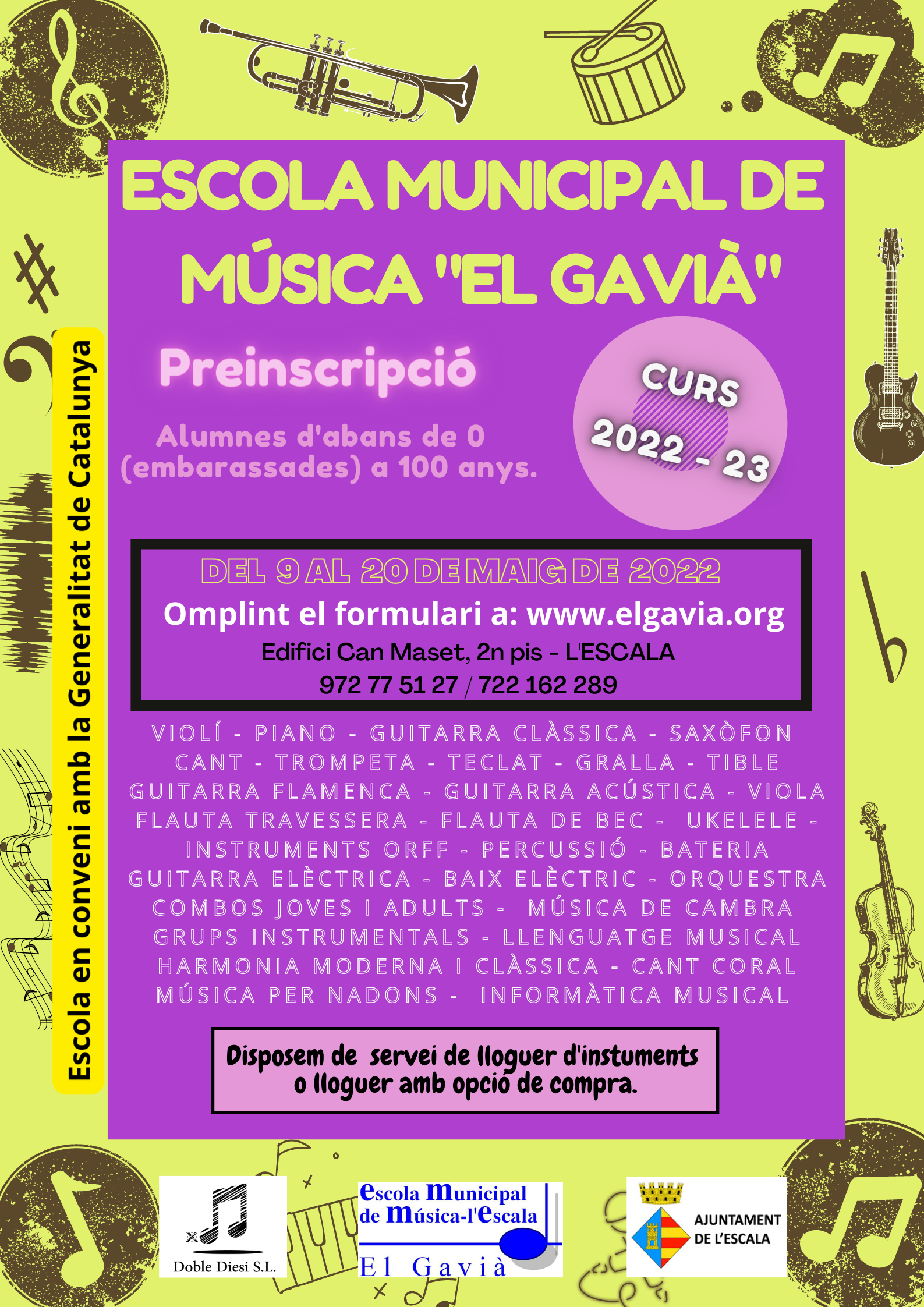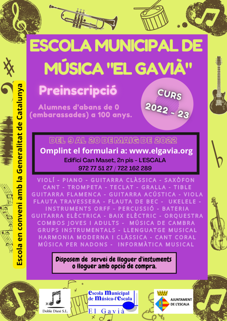Us informem que obrirem el període de preinscripcions, per alumnes nous, del 9 al 20 de maig. Hauran d’omplir el formulari de PREINSCRIPCIÓ al portal web de l’escola www.elgavia.org