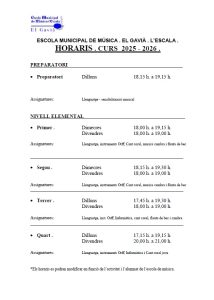 Horaris Curs 2025/26